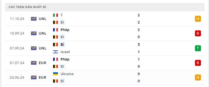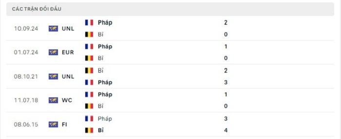 Phong độ gần đây Bỉ vs Pháp