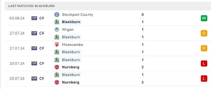 Thống kê có thể thấy được những lần gặp nhau gần đây của Blackburn Rovers và Derby County có được tỷ lệ ghi bàn tương đối cao khi 5 trận gần nhất đều có từ 3 bàn trở lên, trong đó Blackburn Rovers có được 2 chiến thắng với tỷ số 2-1 chung cuộc trước đối thủ này cho thấy được thực lực và hiệu quả ghi bàn của họ, vì vậy mà tỷ số trận đấu sắp tới giữa Blackburn Rovers và Derby County hoàn toàn có thể tiếp tục lặp lại như trước.