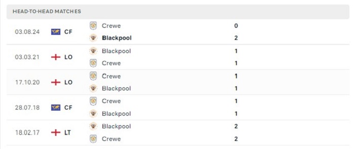 Những lần gặp nhau giữa Blackpool và Crewe trong quá khứ vốn cũng không có quá nhiều bàn thắng ghi được, điều này cũng đã nhận thấy được khi họ cũng chỉ có được 3 trong 10 trận gặp nhau trước đây có tỷ số ghi được trong trận đấu từ 3 bàn thắng trở lên. Hàng công đang là yếu điểm của Crewe trong việc ghi bàn vào lưới đối phương càng khiến cho trận đấu sắp tới khả năng có được nhiều bàn thắng xuất hiện không được kỳ vọng nhiều, do vậy mà khó có thể tin tưởng vào một trận đấu bùng nổ của hai đội về mặt tỷ số.