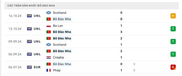 Phong độ gần đây Bồ Đào Nha vs Ba Lan