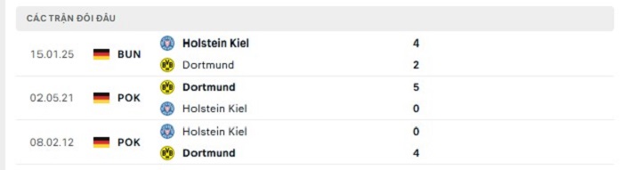 Lịch sử đối đầu của Borussia Dortmund vs Holstein Kiel
