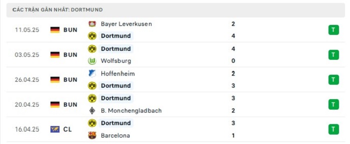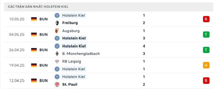 Phong độ gần đây Borussia Dortmund vs Holstein Kiel