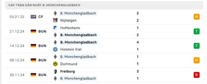 • Phong độ Borussia M’gladbach