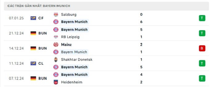 • Phong độ Bayern Munich