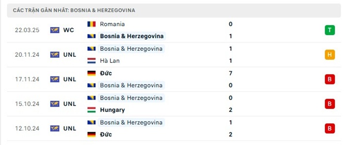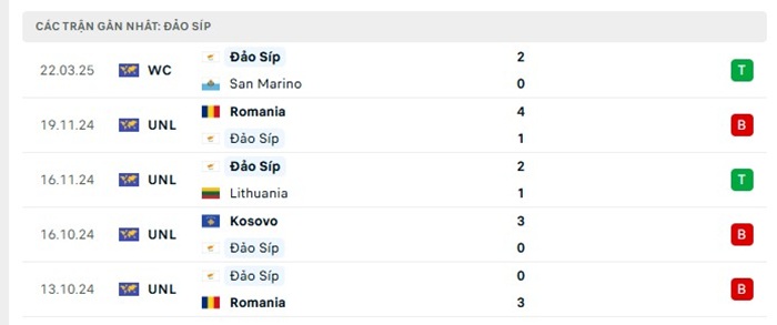 Phong độ gần đây Bosnia & Herzegovina vs Đảo Síp