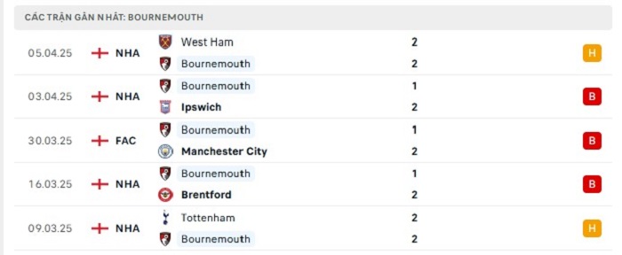 • Phong độ Bournemouth