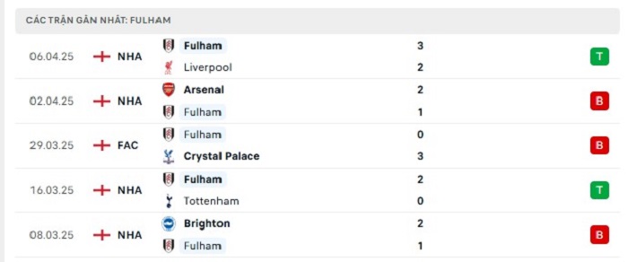 • Phong độ Fulham