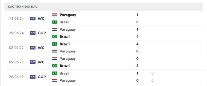 Lịch sử đối đầu của Brazil vs Paraguay