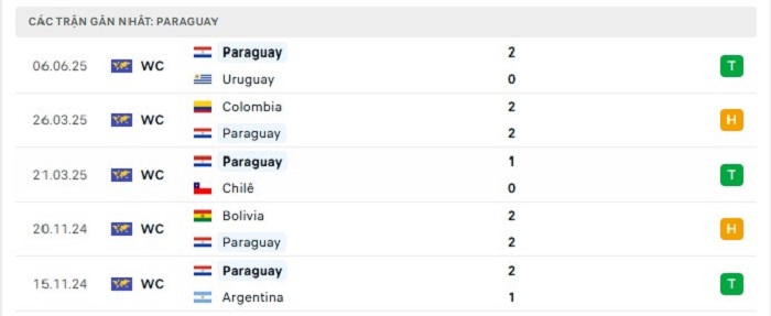 - Phong độ Paraguay
