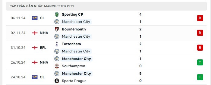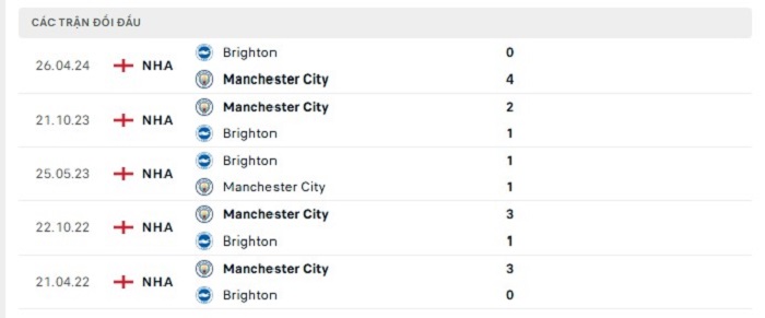 Bảng bóng đá trận đấu Brighton vs Manchester City