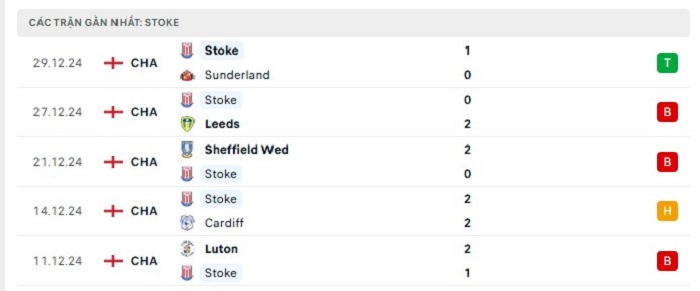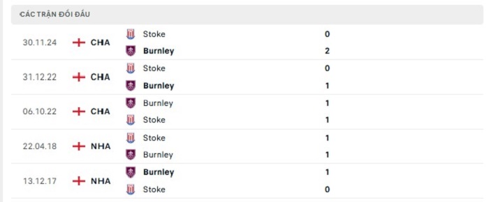 Bảng bóng đá trận đấu Burnley vs Stoke City