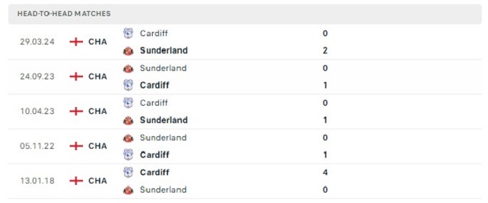 Lịch sử đối đầu của Cardiff City vs Sunderland