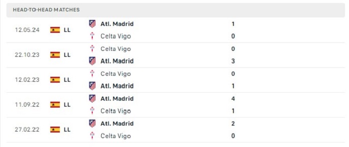 Lịch sử đối đầu của Celta Vigo vs Atletico Madrid