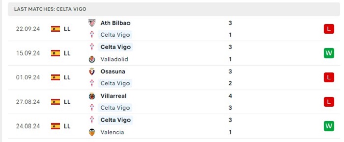 Phong độ gần đây Celta Vigo vs Atletico Madrid
