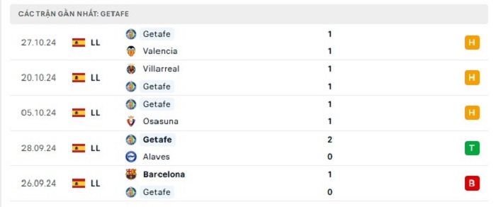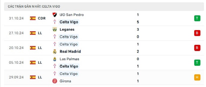 Bảng  bóng đá trận đấu Celta Vigo vs Getafe