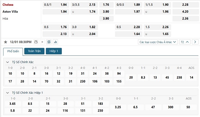 Soi kèo tỷ số Chelsea vs Aston Villa