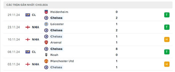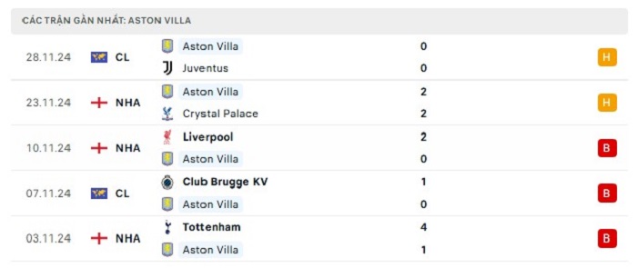 Bảng bóng đá trận đấu Chelsea vs Aston Villa