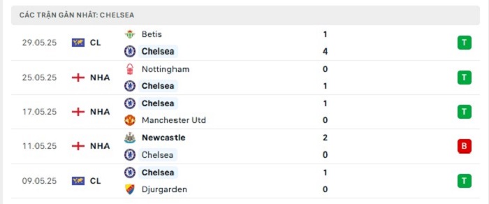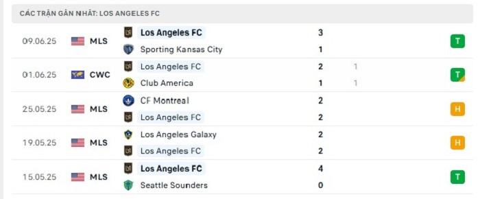 Phong độ gần đây Chelsea vs Los Angeles FC
