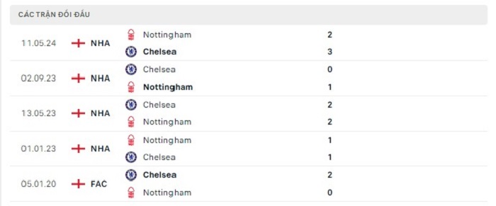 Lịch sử đối đầu của Chelsea vs Nottingham