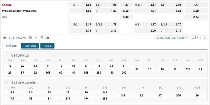 - Dự đoán tỉ số trận đấuChelsea vs Wolves