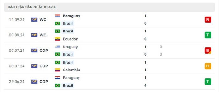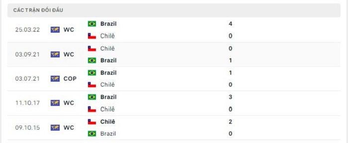 Bảng  bóng đá trận đấu Chile vs Brazil
