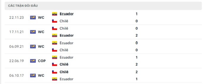 Trong quá khứ thì những trận gặp nhau giữa Chile và Ecuador vốn cũng không có quá nhiều bàn thắng ghi được, điều này có thể thấy khi 3 lần gặp nhau liên tiếp gần đây của hai đội cũng chỉ có được từ 2 bàn thắng ghi được trở xuống. Hàng công của Ecuador tại vòng loại World Cup không thể hiện được sự hiệu quả cho mình trong khi hàng thủ của họ cũng có được sự chắc chắn cho mình, bởi vậy mà trận đấu sắp tới cũng sẽ khó có thể xuất hiện tỷ số cao ghi được trong trận.