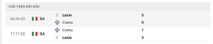 Lịch sử đối đầu của Como vs Lazio