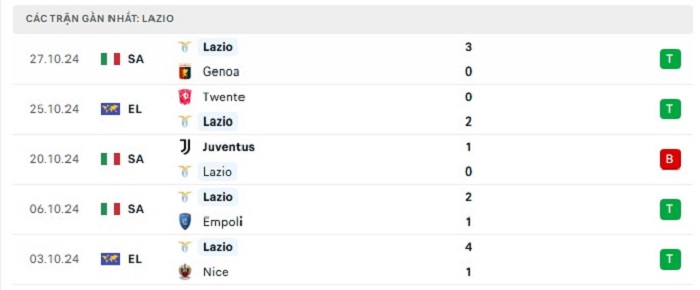 • Phong độ Lazio