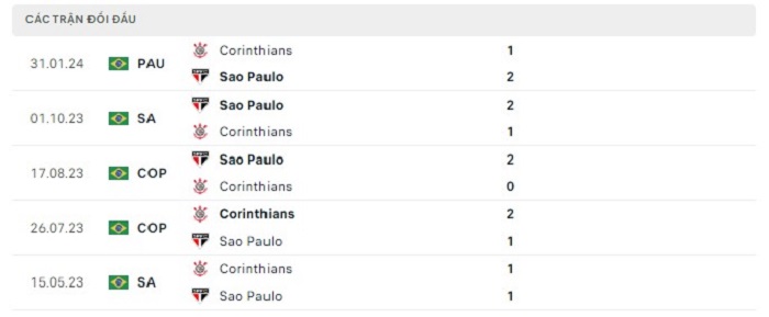 Lịch sử đối đầu của Corinthians vs Sao Paulo
