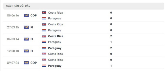 Lịch sử đối đầu của Costa Rica vs Paraguay