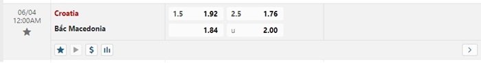 Bảng tỷ lệ kèo bóng đá trận đấu Croatia vs Bắc Macedonia