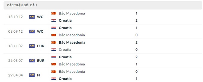 Lịch sử đối đầu của Croatia vs Bắc Macedonia