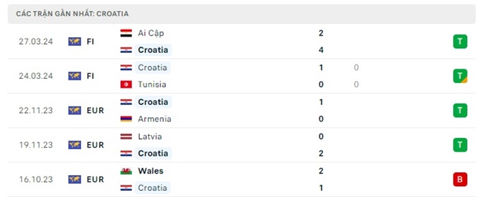 Phong độ gần đây Croatia vs Bắc Macedonia