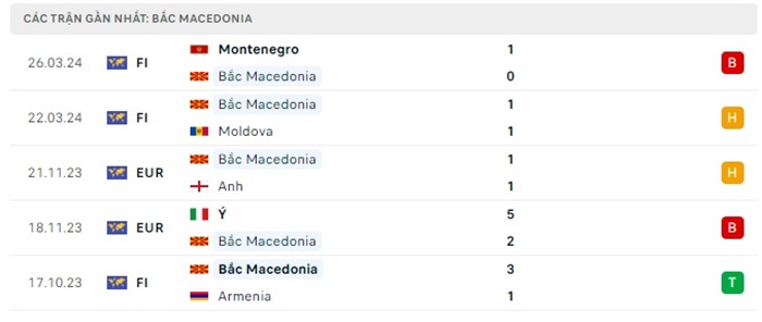 • Phong độ Bắc Macedonia