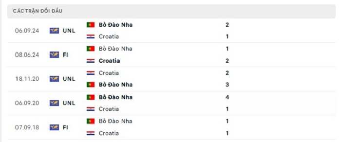 Lịch sử đối đầu của Croatia vs Bồ Đào Nha