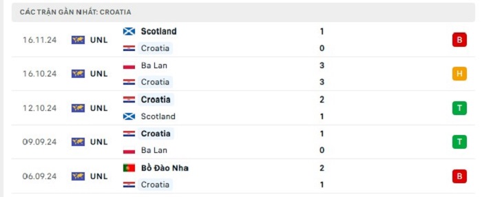 Phong độ gần đây Croatia vs Bồ Đào Nha