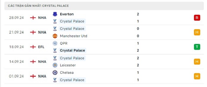 - Phong độ Crystal Palace