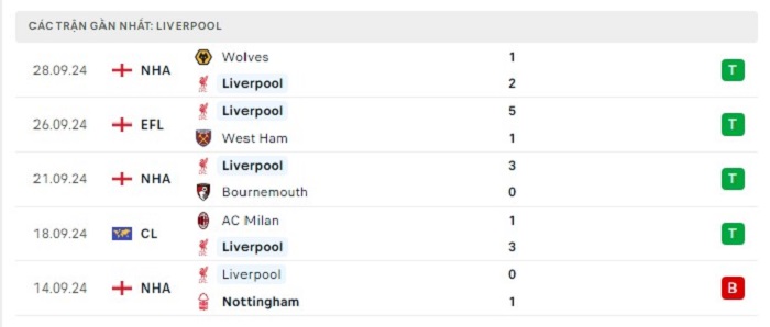 - Phong độ Liverpool