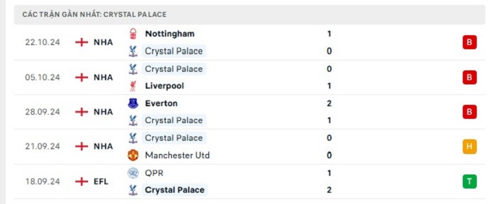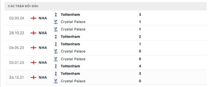 Bảng  bóng đá trận đấu Crystal Palace vs Tottenham