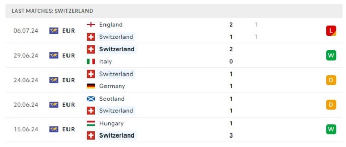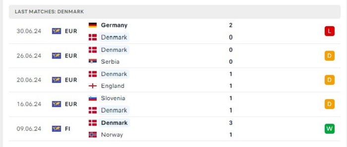 Phong độ gần đây Đan Mạch vs Thụy Sĩ