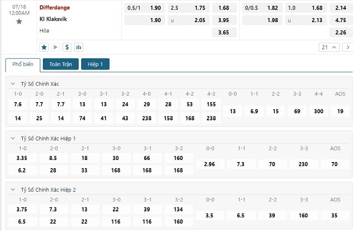 Bảng tỷ lệ kèo bóng đá trận đấu Differdange vs KI Klaksvik