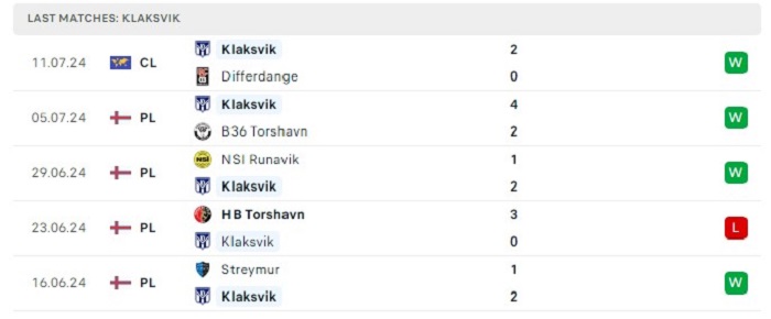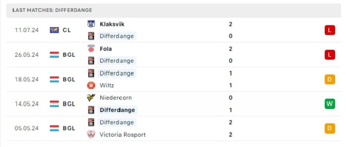 Phong độ gần đây Differdange vs KI Klaksvik