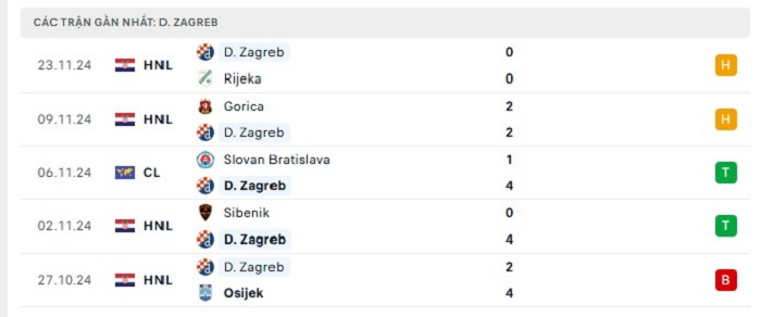 - Phong độ Dinamo Zagreb