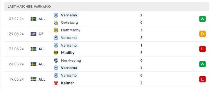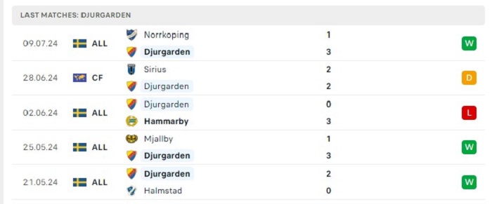 Phong độ gần đây Djurgarden vs IFK Varnamo
