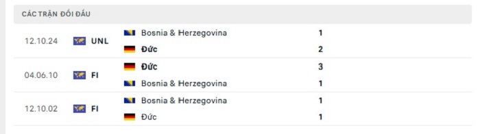 Lịch sử đối đầu của Đức vs Bosnia & Herzegovina