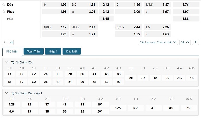 Soi kèo châu Á, kèo chấp Đức vs Pháp