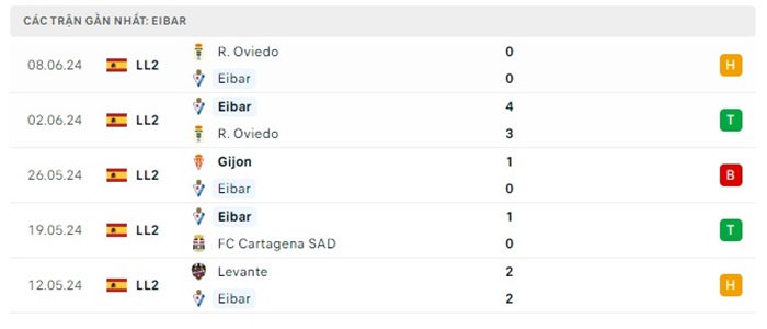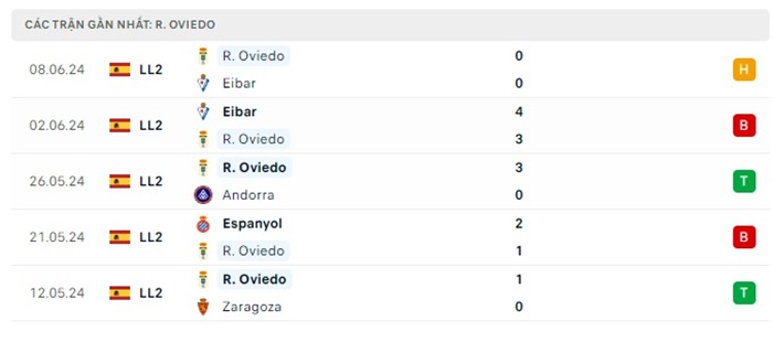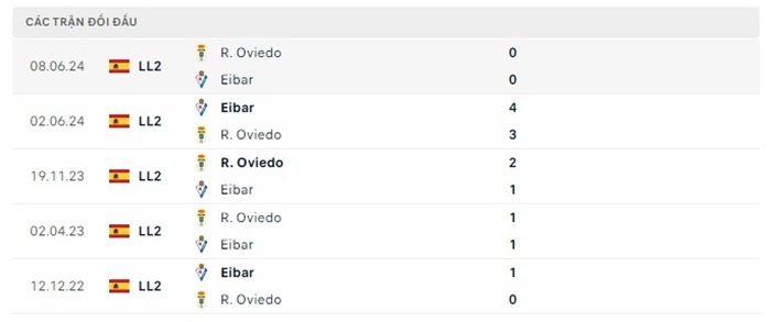 Lịch sử đối đầu của Eibar vs Real Oviedo