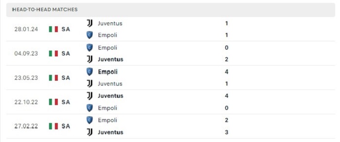 Quá khứ không hề ủng hộ Empoli trong những lần gặp Juventus trước đây, thật vậy bởi trong 10 lần đối đầu gần nhất của mình thì Empoli để thua theo kèo châu Âu tới 7 trận đấu trước Juventus. Trên sân nhà của mình gần đây họ cũng để Juventus vượt qua tới 4 trong 5 lần tiếp đón đối thủ này có thể thấy được những khó khăn rất lớn của họ, chính bởi vậy mà khả năng thắng kèo châu Âu của Juventus vẫn được sự kỳ vọng nhiều hơn.