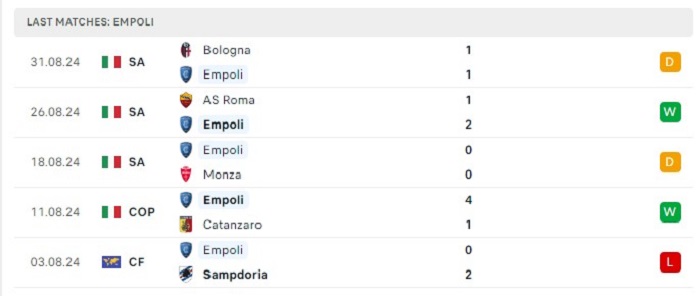 Empoli đang có được màn khởi đầu không tệ ở mùa giải, họ có được 1 chiến thắng và 2 trận hoà sau 3 vòng đấu đầu tiên. Hàng công của Empoli ghi được 3 bàn thắng và hàng thủ của họ cũng mới chỉ nhận 2 bàn thua tại giải đấu. Bên kia sân Juventus còn thể hiện được phong độ tốt hơn khi có được 2 trận thắng và 1 trận hoà, sự chắc chắn trong lối chơi đã được Juventus tạo nên khi họ vẫn đang giữ sạch lưới tại 3 vòng đầu tiên vừa qua của mình, do đó mà cửa xỉu của trận đấu cũng là một phương án lựa chọn không hề tồi.