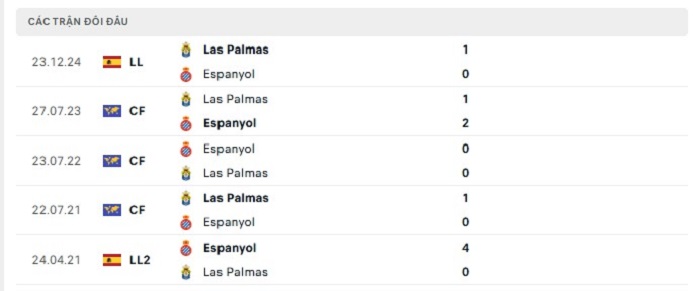 Lịch sử đối đầu của Espanyol vs Las Palmas